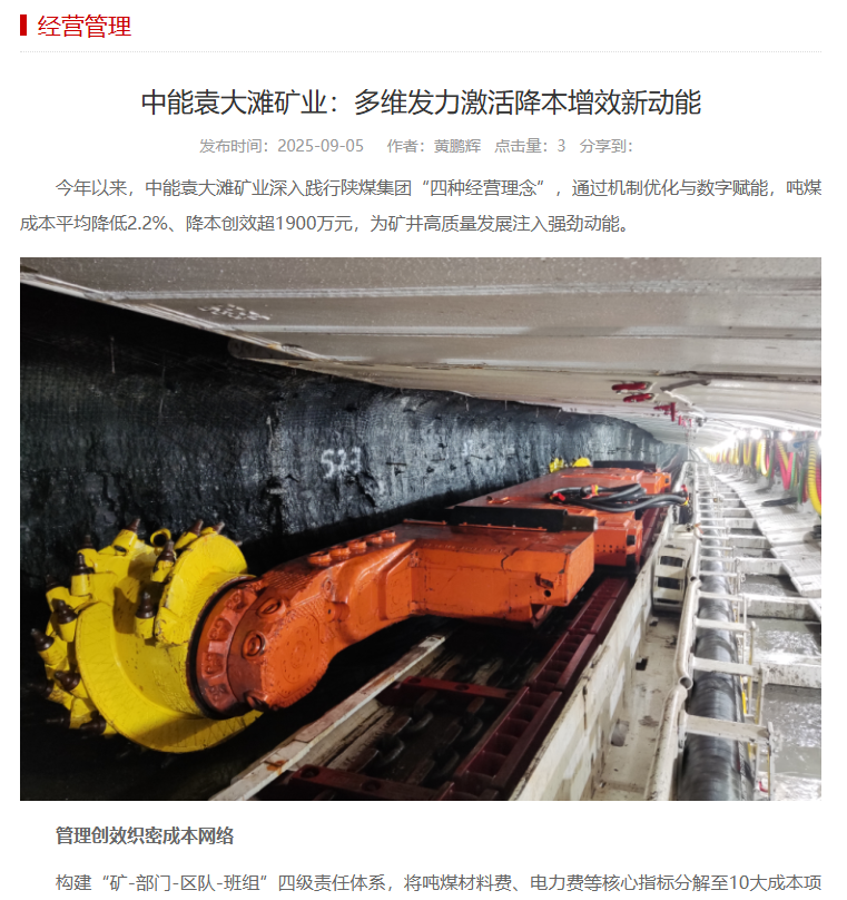 陜西煤業(yè)官網(wǎng)丨中能袁大灘礦業(yè):多維發(fā)力激活降本增效新動能