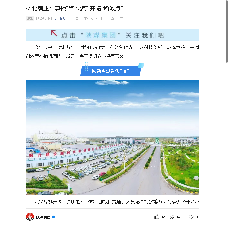 陜煤集團(tuán)微信丨榆北煤業(yè): 尋找“降本源” 開拓“增效點(diǎn)”