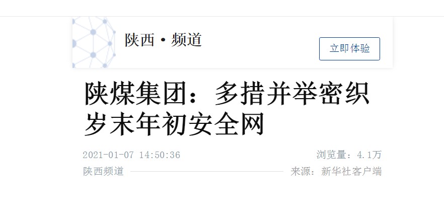 新華社客戶端 | 陜煤集團:多措并舉密織歲末年初安全網(wǎng)