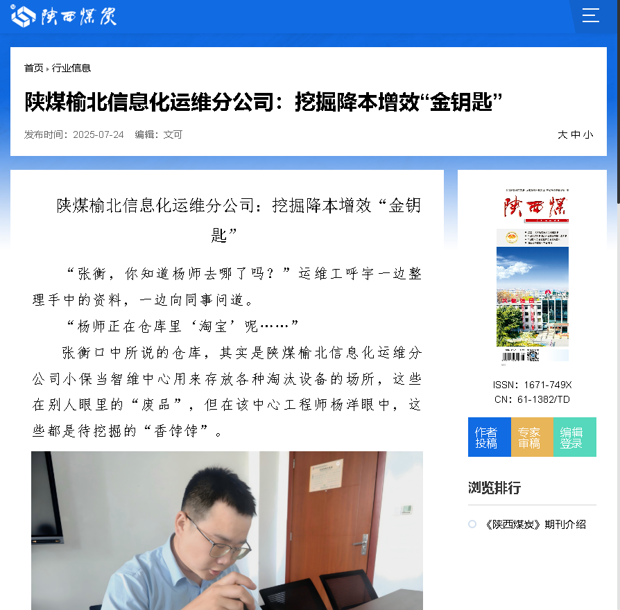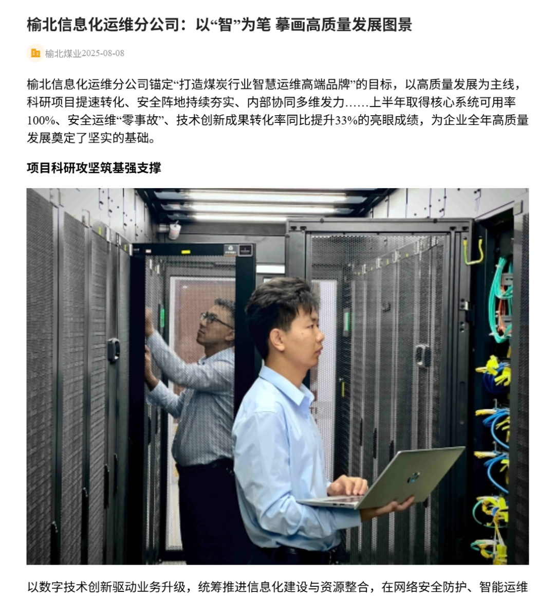 近日,中國煤炭工業(yè)協(xié)會(huì)正式發(fā)布2023-2024年度煤炭行業(yè)兩化深度融合(數(shù)字化轉(zhuǎn)型)優(yōu)秀項(xiàng)目案例,信息化運(yùn)維分公司自主研發(fā)的“煤礦智能化系統(tǒng)常態(tài)化運(yùn)行考核管理系統(tǒng)”成功入選榜單。2023年,信息化運(yùn)維分公司針對(duì)傳統(tǒng)煤礦智能化系統(tǒng)考核依賴人工現(xiàn)場查驗(yàn)、效率低下的痛點(diǎn),組...